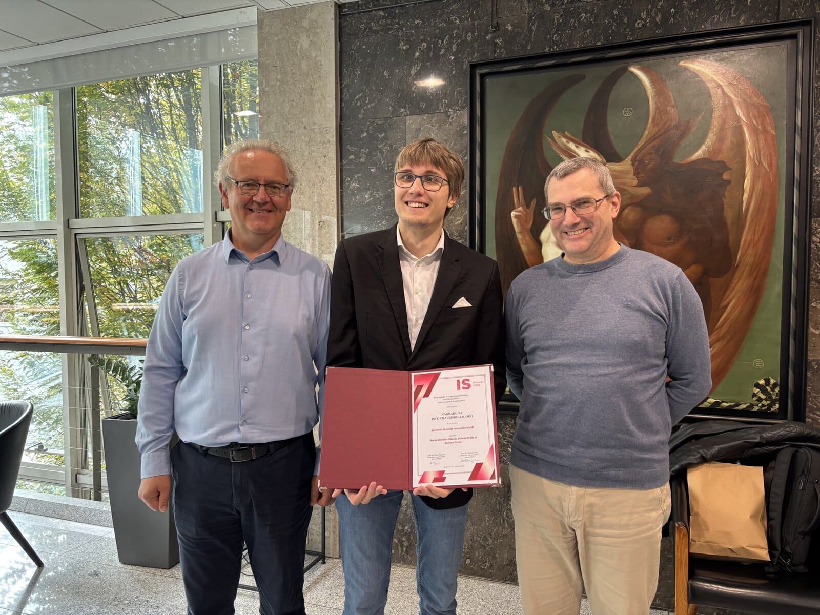Informacijsko jagodo smo prejeli kot ekipa, ki je razvila veliki generativni jezikovni model za slovenščino – GaMS. Nagrado so prejeli dr. Marko Robnik Šikonja, dr. Simon Krek in Domen Vreš.