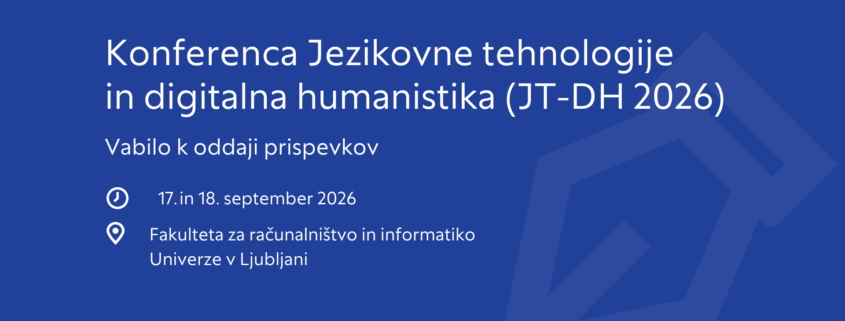 Vabljeni k oddaji prispevkov za konferenco Jezikovne tehnologije in digitalna humanistika (JT-DH 2026), ki bo potekala 17. in 18. septembra 2026 na Fakulteti za računalništvo in informatiko Univerze v Ljubljani.