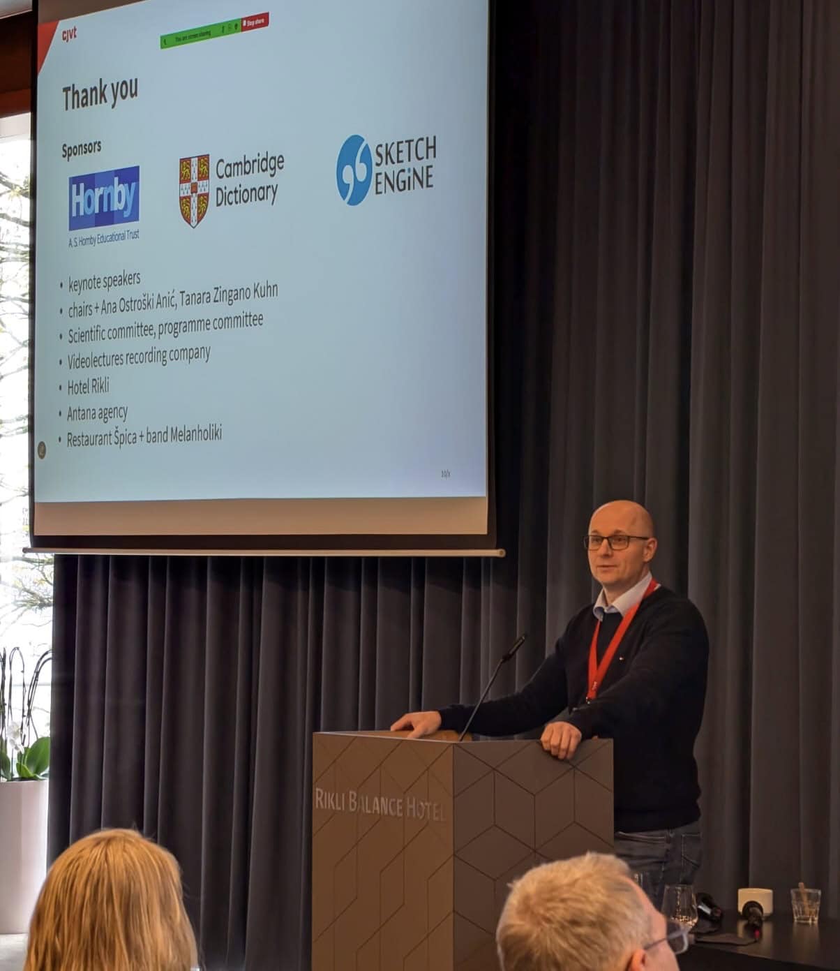 Poleg predstavitev raziskav smo v konferenčni program vključili tudi skupinske diskusije o sedanjosti in prihodnosti leksikografije. Na večernem sprejemu so Euan McGill, Colin McIntosh in Jessica Rundell predstavili besedo leta 2025, ki je po izboru Cambriškega slovarja pridevnik parasocialen.