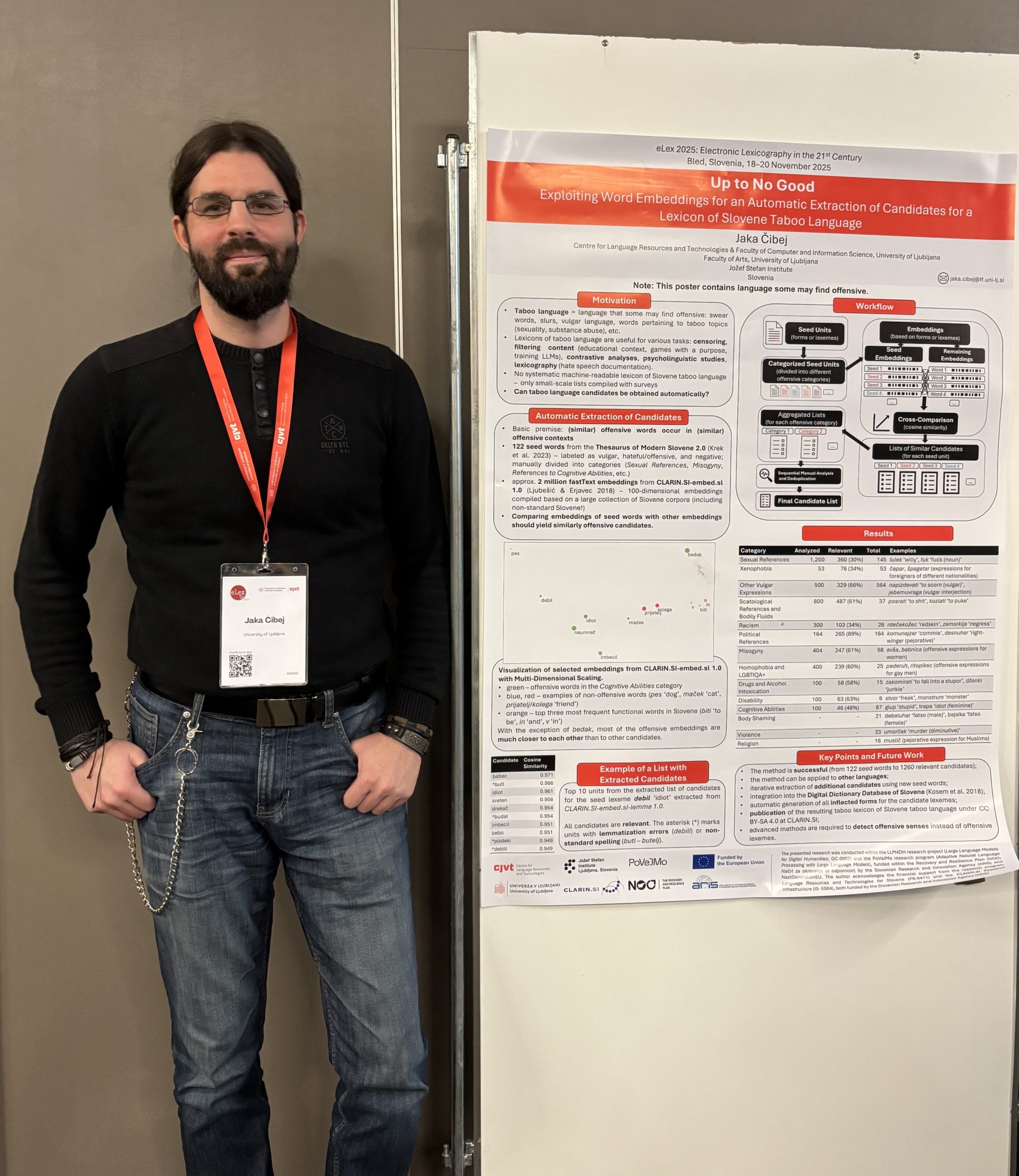 Na Centru za jezikovne vire in tehnologije smo organizirali mednarodno konferenco eLex 2025: elektronska leksikografija v 21. stoletju. Konferenca je potekala med 18. in 20. novembrom 2025, v Rikli Balance hotelu na Bledu. Organizacijsko ekipo je vodil dr. Iztok Kosem.