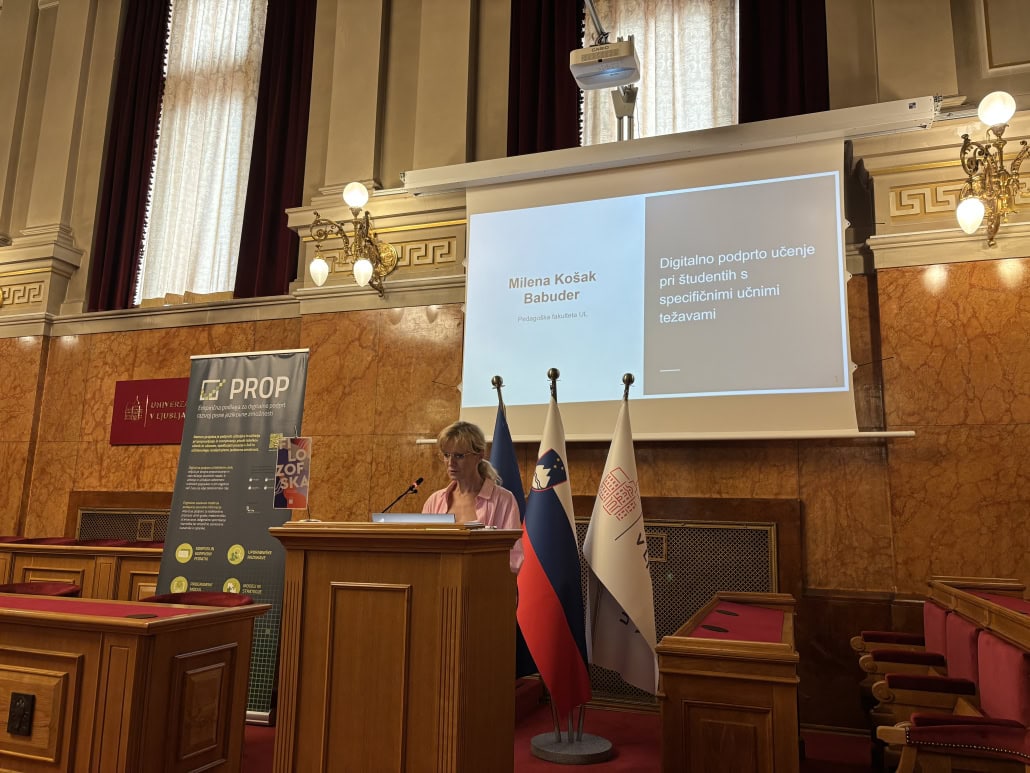 Na koncu je dr. Milena Košak Babuder predstavila pomen digitalno podprtega učenja pri študentih s specifičnimi učnimi težavami. Izpostavila je, da so študenti s specifičnimi učnimi težavami pomembna in vedno bolj številčna skupina v visokošolskem prostoru. Pri tem je digitalno podprto učenje ključ do inkluzivnosti, ki je akademska in družbena nujnost.