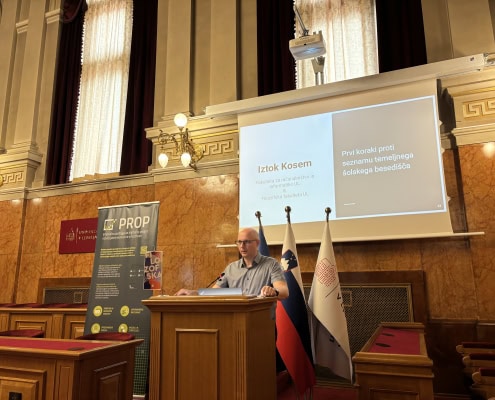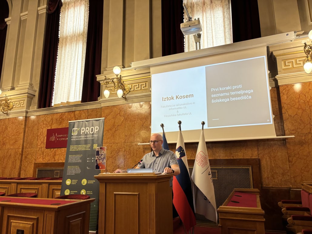 Dr. Iztok Kosem je predstavil prve korake proti seznamu temeljnega šolskega besedišča. Seznami besed so v tujini stalnica, pomembni pa so predvsem za učenje tujih jezikov. Seznami besed so v slovenskem prostoru relativno novi. V okviru projekta PROP je bil izdelan korpus besedil ccUčbeniki 1.0, ki ima 2.181.602 pojavnic in je na voljo pod odprto licenco na repozitorij Clarin.si. V korpusu je združeno temeljno šolsko besedišče, ki ga šolarji srečajo v receptivni rabi.